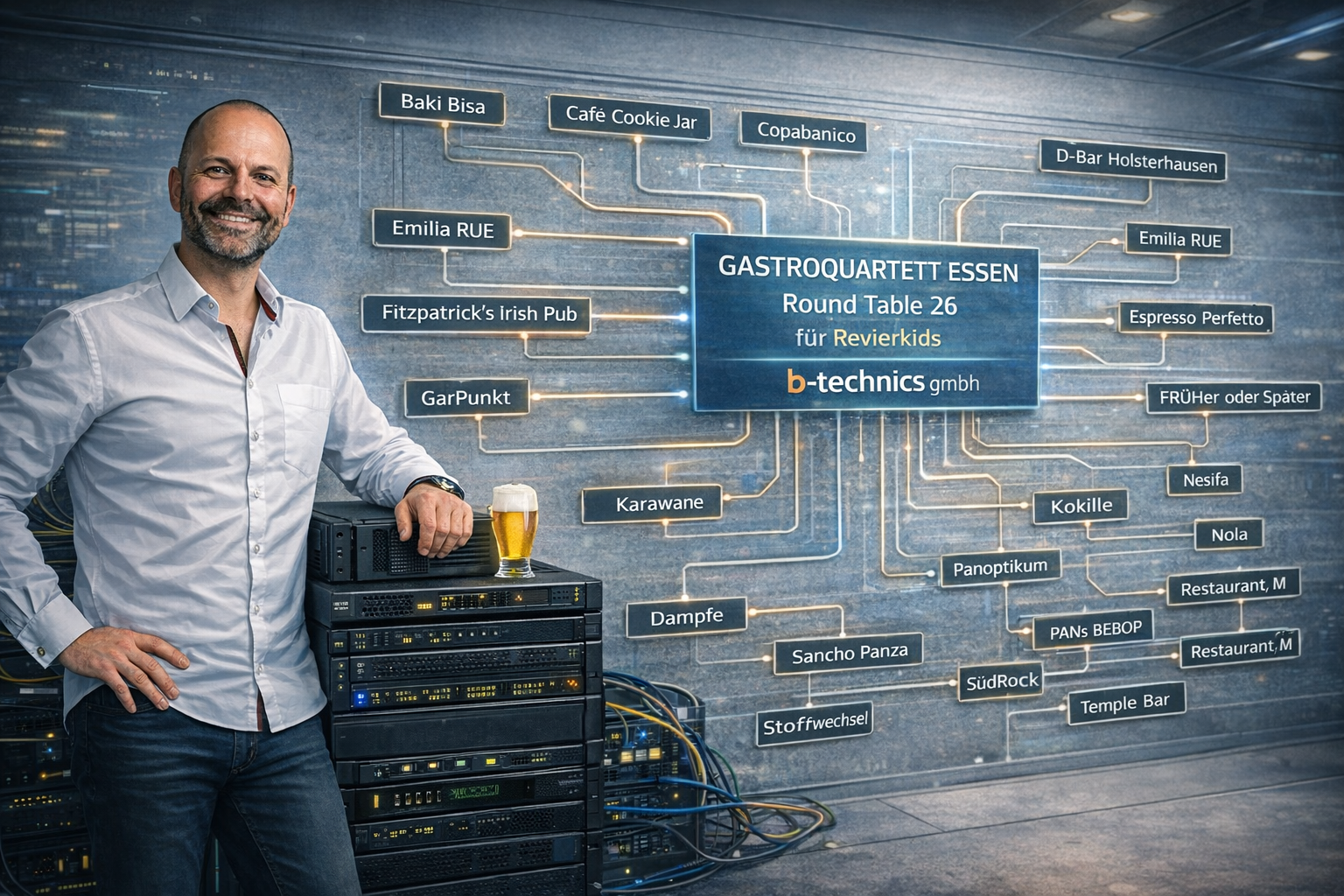 Hallo! Wir sind die Sponsoren des Gastronomiequartetts Essen und unterstützen gerne die gute Sache. Danke, dass Du mitmachst!